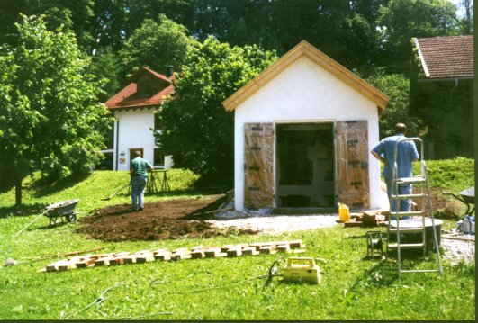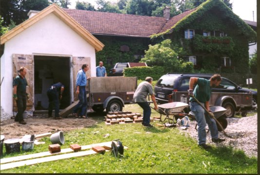 Vom Bau des neuen Backhäusl (Kamin, Dach und Aussenanlagen)